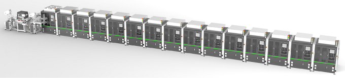 膜电极封装产线方面,新能源目前可以年产能>100万片。在边框、CCM、GDL的综合贴合精度,包括来料精度,综合贴合精度大概可以做到0.02,综合裁切精度可以做到0.01。产线包含了整个CCM边框GDL的卷料自动化裁切,包括新能源CCM边框的真空热压贴合,还有整个GDL和边框的粘接、GDL的七合一封装,封装完后还包括激光打码、气密性检测、瑕疵检测,最终下料全部都是自动化作业完成,在行业里已有多条的产线交付和使用投产。