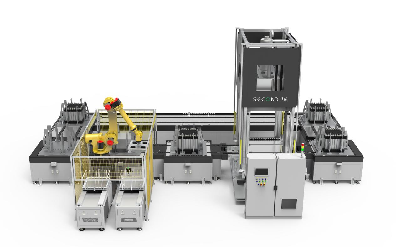 一是液流电池大行程高精度点胶机,可实现液流电池部件的粘接及密封;二是自动裁切机,其对质子膜、离子膜、热熔胶片、碳毡等材料进行卷料或片料裁切,集成到自动线可实现自动下料及对位贴合;三是液流电池极板自动化组装封装线,可实现极框、石墨极板、热熔胶片、碳毡的自动上料堆叠、治具锁紧、热固化、冷却定型、自动坼垛等;四是质子膜/离子膜封装生产线,其对液流电池传统质子膜工艺进行了封装改善,大大节约了质子膜的材料成本;五是液流电池自动组装线,机器人搭载视觉系统可实现自动堆叠、料仓式上料、流线式生产,多工位同时作业并行生产,大大提高了生产效率,同时产品质量也得到了更有效保证……
