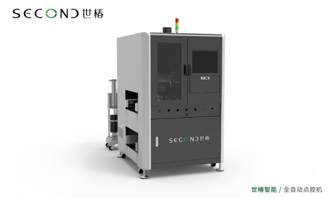 全自动点胶机,具有如下技术特点:一是设备兼容性广,可扩展三轴、五轴点胶,可兼容多种胶水包装,可适配多种类点胶阀门和供胶方式;二是封闭式外壳设计,便于操作的同时,提高了点胶环境的清洁性;三是通过CCD自动定位,具有快速、精准和自动化等优势;四是供胶/控胶系统采用压盘泵+撞针阀设计,具有更大的供胶压力,出胶效率更高;五是编程界面简单友好,常用的图形(圆、椭圆、矩形等)无需教导,可直接输入参数调用。