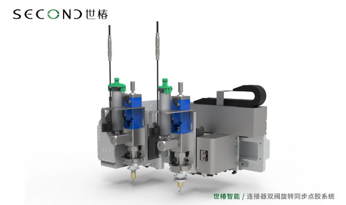 两大点胶模块包括:一是双阀旋转点胶模块,适用于中高粘度液体精密点胶,通过行程调节改变胶水通断口的大小,具有流量可调节,断胶干净、维护简单等特点;二是300-960ml卡筒供胶模块,采用卡式胶筒,避免应用中出现胶桶变形、爆胶现象,压把装置,方便拆装,节省换胶时间。