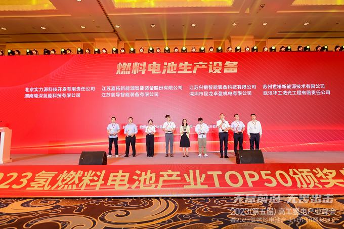 为助力挖掘氢燃料电池细分赛道更具实力与潜力的创新型企业,树立标杆企业,为氢燃料电池技术的大规模应用提供借鉴经验,助力推动整个产业高质量快速发展,新能源为2023氢燃料电池产业TOP50颁奖典礼晚宴提供赞助。6月14日晚,2023氢燃料电池产业TOP50颁奖典礼盛大举办,现场来自氢电产业链上下游的优秀企业代表共同见证了这一榜单权威发布的荣耀时刻。