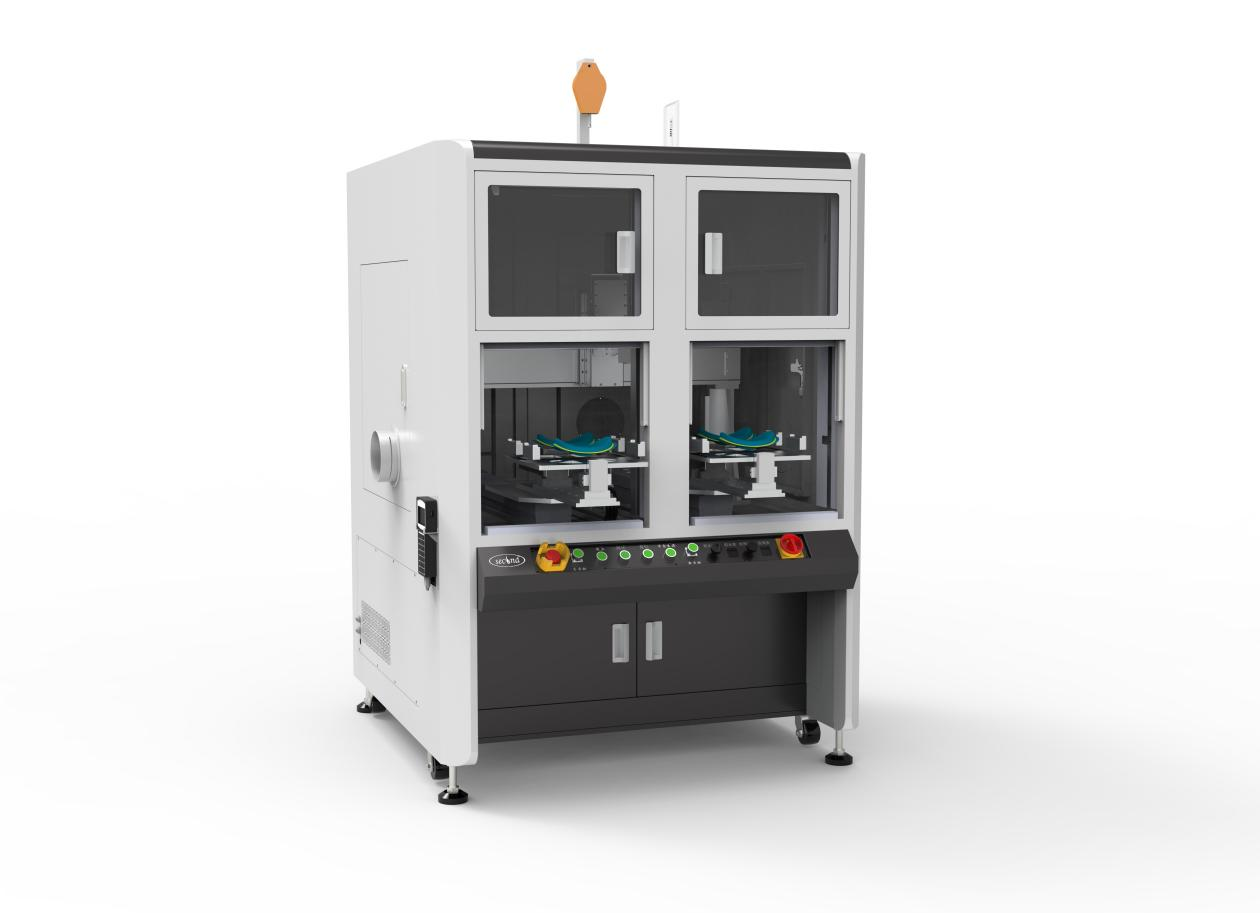 一是六轴四联动双工位点胶机。该设备为六轴四联动双工位作业模式,生产过程中上下料机器无停顿,具备高度智能化和自动化的特点,可以实现自动点胶、自动取胶、自动切换工位以及自动胶嘴校正等功能。用户只需简单设置参数和程序,就能快速开始生产。其不仅加快了点胶速度和生产效率,同时也提高了点胶精度和产品质量,适合VR/AR智能穿戴产品的中框、骨架连续点胶、透镜点胶、电池保护板点胶、散热膏点胶、磁铁粘接点胶等工艺。双Y后平台交替作业,进一步提高生产效率。强大的模块搭载能力,能兼容多种胶水类型与包装的点胶应用。